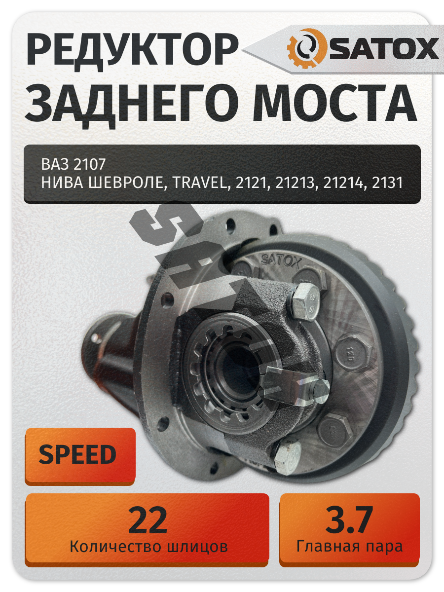Редуктор заднего моста SATOX с передаточным числом 3,7 (11/41) — оригинальное заводское решение для автомобилей ВАЗ, которое обеспечивает повышенную скорость движения по сравнению со штатными редукторами (3,9).